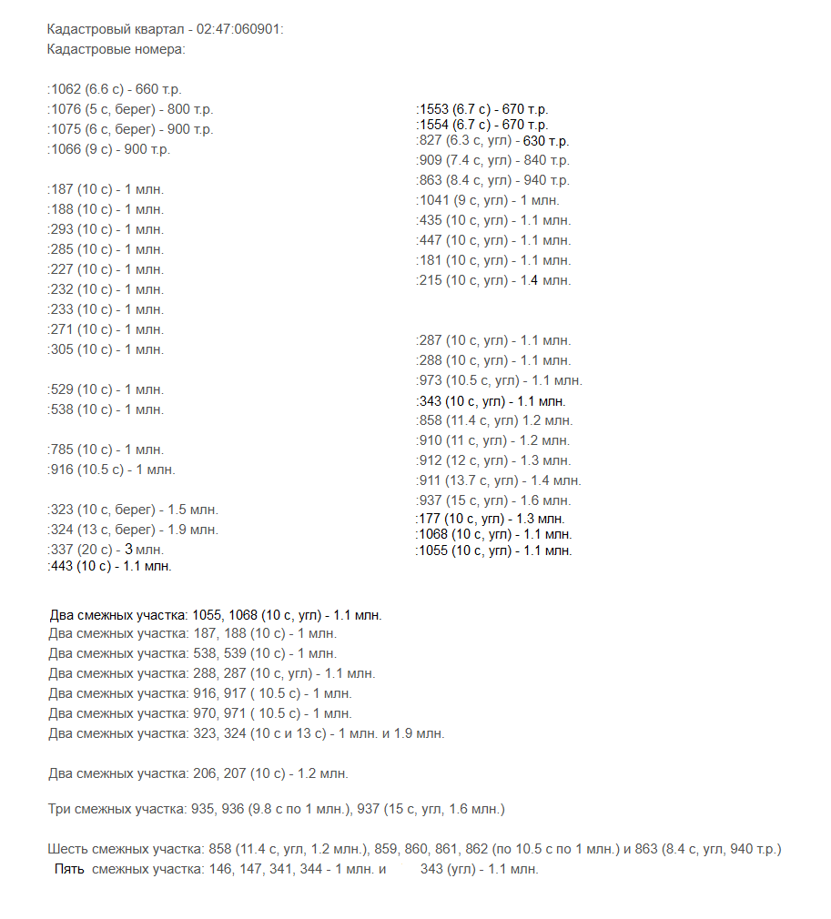 Кадастровые номера: 02:15:081001:147 - 154